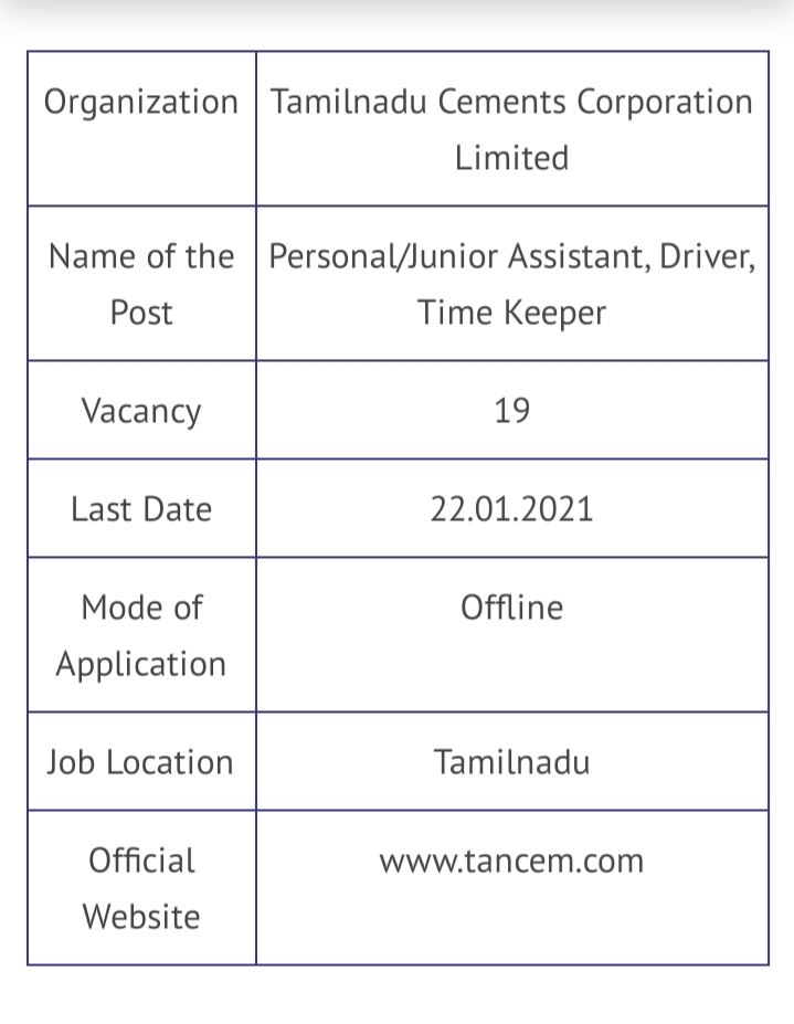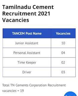 தமிழ்நாடு சிமெண்ட் நிறுவனம் 2021 ஆம் ஆண்டிற்கான காலியிடங்களை அறிவித்துள்ளது.