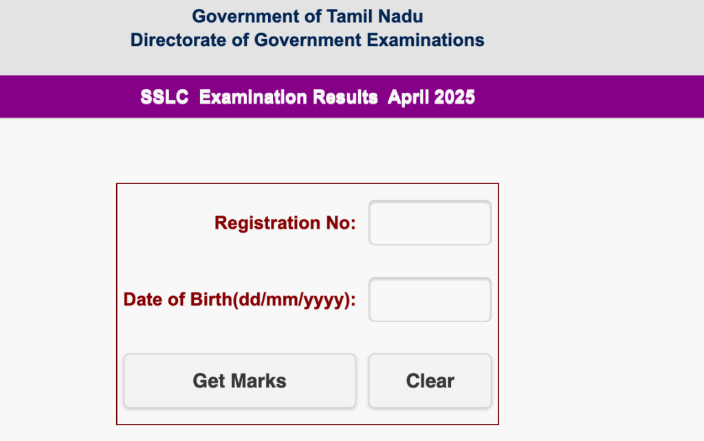 கீழே இருக்கும் லிங்கை கிளிக் செய்து, உங்கள் பதிவு எண் மற்றும் பிறந்த தேதியை உள்ளீடு செய்து, உங்கள் பத்தாம் வகுப்பு தேர்வு முடிவுகளை தெரிந்து கொள்ளுங்கள்.
