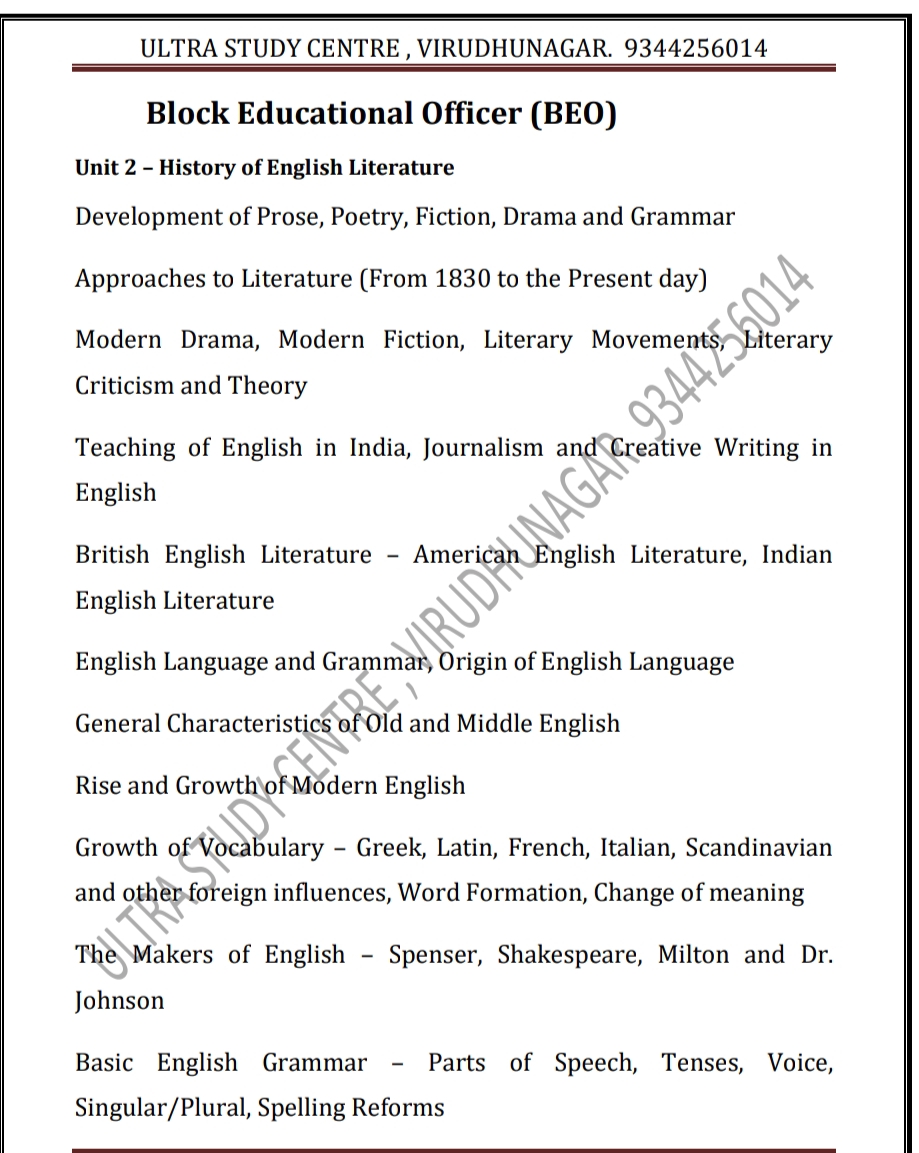 BEO தேர்வர்கள் பயன்பெறும் வகையில் விருதுநகர் அல்ட்ரா ஸ்டடி சென்டர் BEO ENGLISH மெட்டீரியலை இலவசமாக வழங்குகிறது. டவுன்லோட் செய்து பயன்பெறுங்கள்