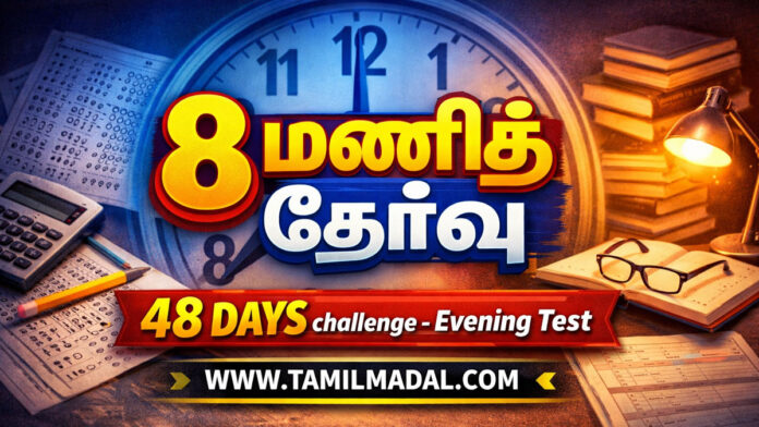 நமது தமிழ் மடல் இணையதளம் 2026 இல் நடைபெறவிருக்கும் TNPSC/SPECIAL TET/SGT தேர்வர்கள் பயன்பெறும் வகையில் 8 மணி தேர்வு தொகுப்பினை இலவசமாக Feb-18 முதல் Apr-06 வரை 48நாட்கள் வழங்குகிறது.. இதில் முதல் பகுதியாக 8 ஆம் வகுப்பு முதல் 10 ஆம் வகுப்பு வரையிலான தமிழ் பாட பகுதி தேர்வுகள் காலை 6:30 மணிக்கும் 6ஆம் வகுப்பு முதல் 8ஆம் வகுப்பு வரையிலான அறிவியல் மற்றும் சமூக அறிவியல் தேர்வுகள் இரவு 8 மணிக்கும் நடத்தப்பட இருக்கின்றன. இந்த தேர்வு தொகுப்பு நிறைவடைந்ததும் இதில் விடுபட்ட பாடப் பகுதிக்கான தேர்வுகள் அடுத்த 48 நாட்கள் தொடர்ந்து நடத்தப்படும். அதில் TNPSC GROUP-02 GROUP-04 தேர்வர்களுக்கு சிலபஸ் வாரியாக தேர்வுகள் வழங்கப்படும்…